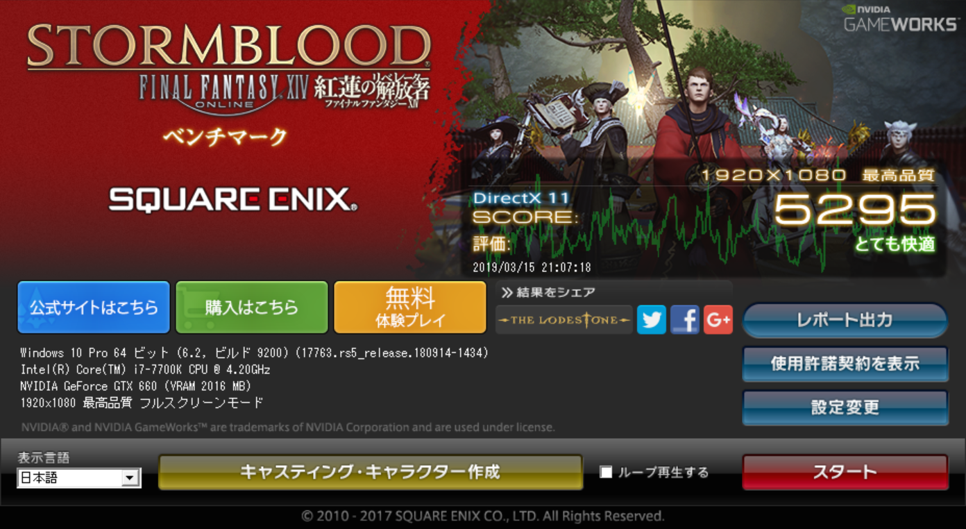 こちらは660の10倍以上のスコアが出ました。そして意外にも非常に快適に。
