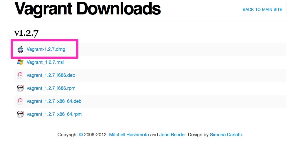 HOME > DevOps・インフラ > コンテナー仮想化 > コンテナー仮想化 MacでVagrantを使ってみる Vagrantのインストール 2018/02/21 前回に引き続き、Vagrantのインストール編。 と言っても、ダウンロードしてダブルクリックするだけです・・・。 こちらからダウンロード よくわからないので、現時点の最新版をダウンロードしてみました。 次回は、いよいよVagrantを使っていきたいと思います。 関連性のある記事を表示しています MacでVagrantを使ってみる VirutalBoxのインストール MacでVagrantを使ってみる boxの準備から起動 Twitter Share Pocket Hatena LINE コピーする -コンテナー仮想化 -vagrant