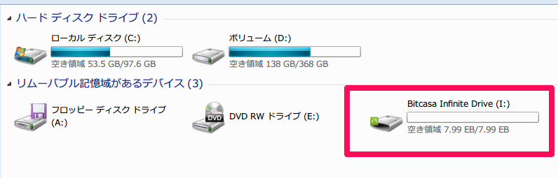 ローカルディスクをミラーリングしてBitcasaに同期する機能です。